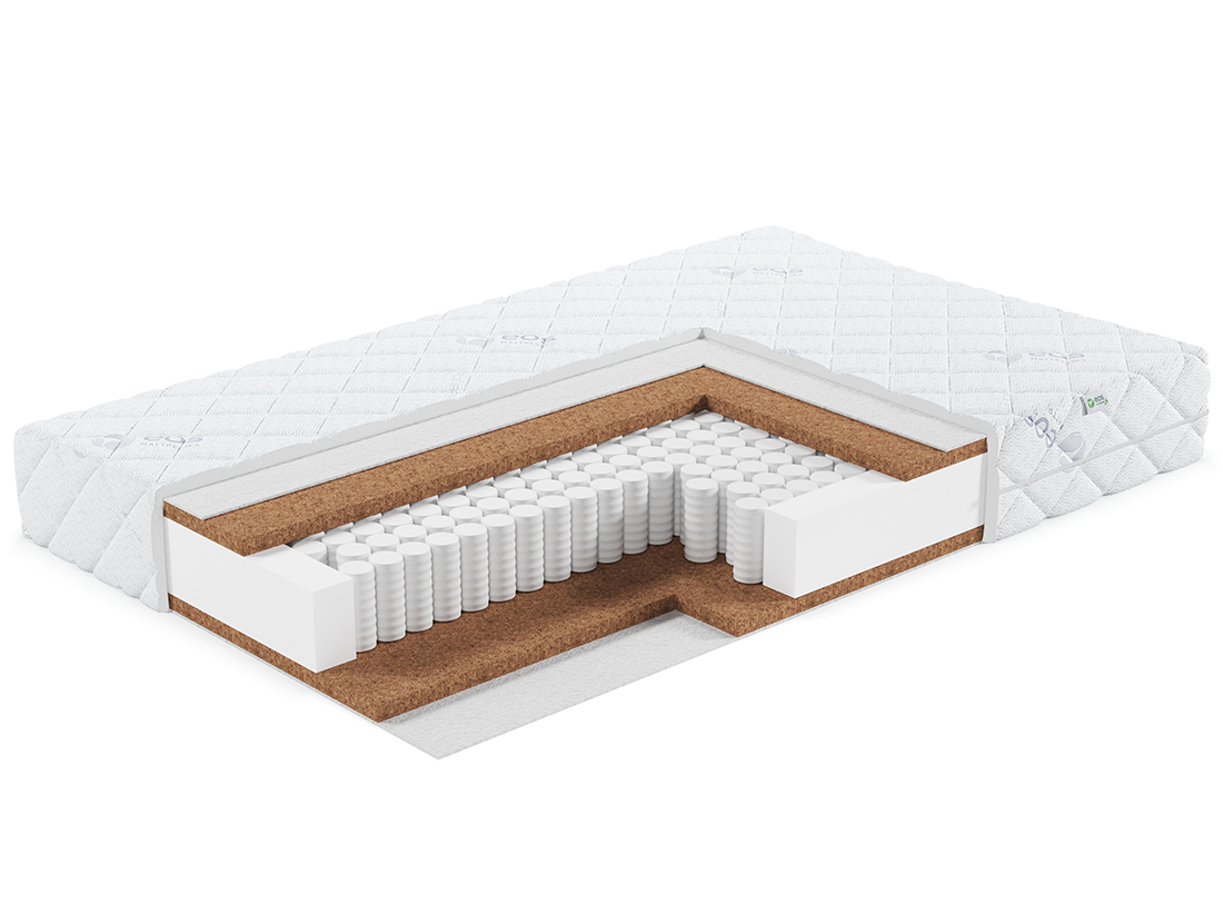 Натуральный гипоаллергенный материал. Благодаря пропитке из натурального латекса, волокна прочно скреплены в цельную плиту. Кокосовое волокно придает матрасу жёсткость и обладает бактерицидными свойствами. Производство – Enkev, Польша.