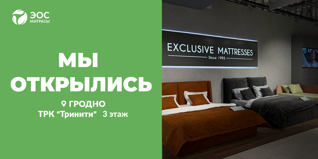 Отличные новости для жителей Витебска - открылся второй фирменный магазин «Матрасы ЭОС»!Здесь вас ждет широкий ассортимент популярных кроватей, матрас...
