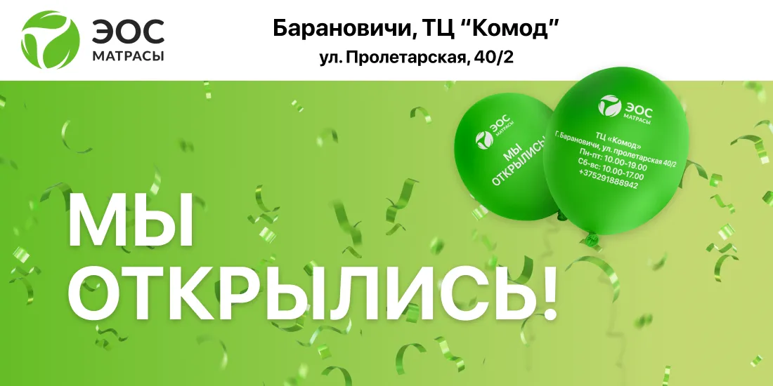 Мы открыли четвёртый салон ЭОС в Минске! Жители Юго-запада и окрестностей теперь могут посмотреть, потрогать, прилечь, оценить и купить матрас ЭОС в Т...